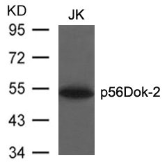 Western blot analysis of extracts from JK cells using p56Dok-2(Ab-299) Antibody.