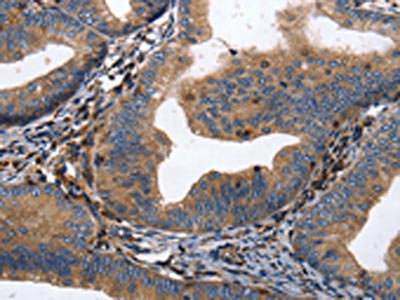 The image on the left is immunohistochemistry of paraffin-embedded Human cervical cancer tissue using CSB-PA996208(DPYSL4 Antibody) at dilution 1/15, on the right is treated with synthetic peptide. (Original magnification: ×200)