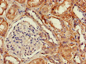 Immunohistochemistry of paraffin-embedded human kidney tissue using CSB-PA007172LA01HU at dilution of 1:100