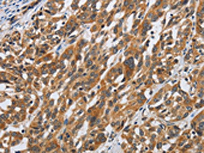 The image on the left is immunohistochemistry of paraffin-embedded Human thyroid cancer tissue using CSB-PA921679(DSP Antibody) at dilution 1/40, on the right is treated with synthetic peptide. (Original magnification: ×200)