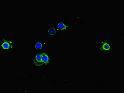 • Immunofluorescent analysis of Hela cells using CSB-PA007409LA01HU at dilution of 1:100 and Alexa Fluor 488-congugated AffiniPure Goat Anti-Rabbit IgG(H+L)