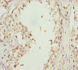 Immunohistochemistry of paraffin-embedded human testis tissue using CSB-PA708490ESR1HU at dilution of 1:100