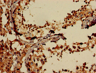 Immunohistochemistry of paraffin-embedded human testis tissue using CSB-PA007510LA01HU at dilution of 1:100