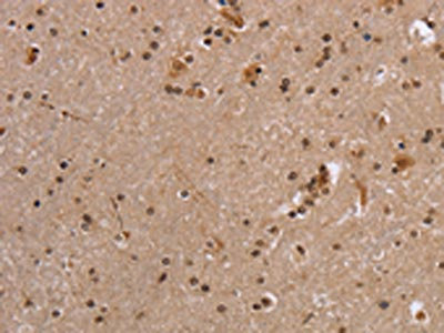 The image on the left is immunohistochemistry of paraffin-embedded Human brain tissue using CSB-PA114148(EIF3H Antibody) at dilution 1/40, on the right is treated with fusion protein. (Original magnification: ×200)