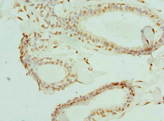 Immunohistochemistry of paraffin-embedded human breast cancer using CSB-PA007596DSR1HU at dilution of 1:100