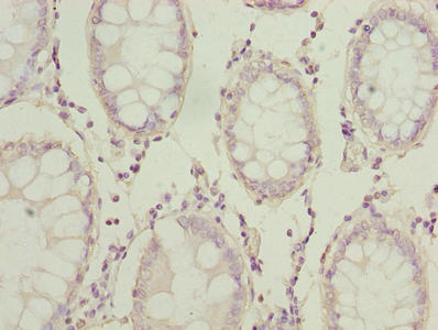 • Immunohistochemistry of paraffin-embedded human colon cancer using CSB-PA02395A0Rb at dilution of 1:100