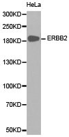 別名:Verb b2 erythroblastic leukemia viral oncogene homolog 2, neuro/glioblastoma derived oncogene homolog antibody; C erb B2/neu protein antibody; CD340 antibody; CD340 antigen antibody; Cerb B2/neu protein antibody; CerbB2 antibody; Erb b2 receptor tyrosine kinase 2 antibody; ErbB-2 proto-oncogene antibody; ERBB2 antibody; ERBB2_HUMAN antibody; HER 2 antibody; HER 2/NEU antibody; HER2 antibody; Herstatin antibody; Human epidermal growth factor receptor 2 antibody; Metastatic lymph node gene 19 protein antibody; MLN 19 antibody; MLN19 antibody; NEU antibody; NEU proto oncogene antibody; Neuro/glioblastoma derived oncogene homolog antibody; Neuroblastoma/glioblastoma derived oncogene homolog antibody; NGL antibody; p185erbB2 antibody; Proto-oncogene c-ErbB-2 antibody; Proto-oncogene Neu antibody; Receptor tyrosine-protein kinase erbB-2 antibody; TKR1 antibody; Tyrosine kinase type cell surface receptor HER2 antibody; Tyrosine kinase-type cell surface receptor HER2 antibody; V erb b2 avian erythroblastic leukemia viral oncogene homolog 2 (neuro/glioblastoma derived oncogene homolog) antibody; V erb b2 avian erythroblastic leukemia viral oncogene homolog 2 antibody; V erb b2 avian erythroblastic leukemia viral oncoprotein 2 antibody; V erb b2 erythroblastic leukemia viral oncogene homolog 2, neuro/glioblastoma derived oncogene homolog (avian) antibody; V erb b2 erythroblastic leukemia viral oncogene homolog 2, neuro/glioblastoma derived oncogene homolog antibody; Verb b2 erythroblastic leukemia viral oncogene homolog 2, neuro/glioblastoma derived oncogene homolog (avian) antibody