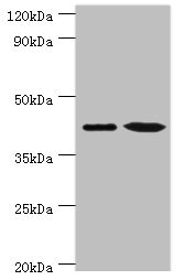Predicted band size: 43 kDa