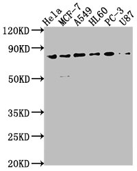 Positive WB detected in: Hela whole cell lysate, MCF-7 whole cell lysate, A549 whole cell lysate, HL60 whole cell lysate, PC-3 whole cell lysate, U87 whole cell lysate