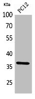 • Western Blot analysis of PC12 cells using JAM-A Polyclonal Antibody.