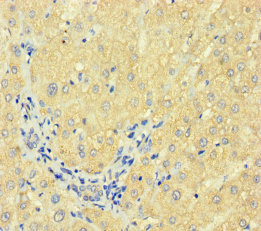 • Immunohistochemistry of paraffin-embedded human liver cancer using CSB-PA007930HA01HU at dilution of 1:100