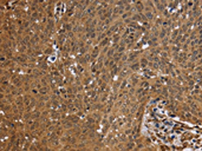 The image on the left is immunohistochemistry of paraffin-embedded Human cervical cancer tissue using CSB-PA798885(FHL2 Antibody) at dilution 1/50, on the right is treated with fusion protein. (Original magnification: ×200)