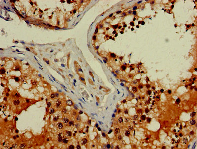 Immunohistochemistry of paraffin-embedded human testis tissue using CSB-PA008671LA01HU at dilution of 1:100