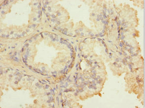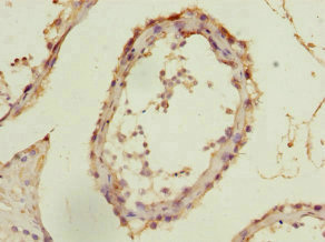 Immunohistochemistry of paraffin-embedded human testis tissue using CSB-PA008671ESR2HU at dilution of 1:100