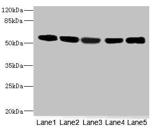 Lane 5: HepG2 whole cell lysate
