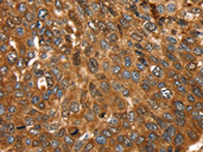 • The image on the left is immunohistochemistry of paraffin-embedded Human esophagus cancer tissue using CSB-PA247700(FTH1 Antibody) at dilution 1/25, on the right is treated with fusion protein. (Original magnification: ×200)
