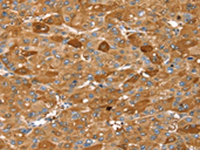• The image on the left is immunohistochemistry of paraffin-embedded Human liver cancer tissue using CSB-PA247700(FTH1 Antibody) at dilution 1/25, on the right is treated with fusion protein. (Original magnification: ×200)