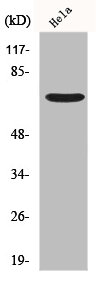• Western Blot analysis of Hela cells using Frizzled-1 Polyclonal Antibody