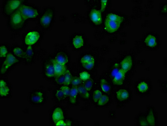 • Immunofluorescent analysis of HepG2 cells using CSB-PA891782LA01HU at dilution of 1:100 and Alexa Fluor 488-congugated AffiniPure Goat Anti-Rabbit IgG(H+L)