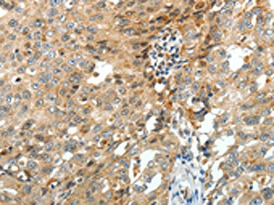 • The image on the left is immunohistochemistry of paraffin-embedded Human lung cancer tissue using CSB-PA129862(FZD3 Antibody) at dilution 1/20, on the right is treated with synthetic peptide. (Original magnification: ×200)