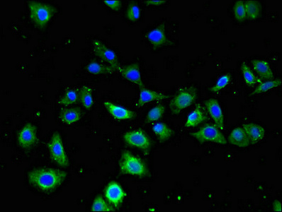 Immunofluorescent analysis of PC-3 cells using CSB-PA890755LA01HU at dilution of 1:100 and Alexa Fluor 488-congugated AffiniPure Goat Anti-Rabbit IgG(H+L)