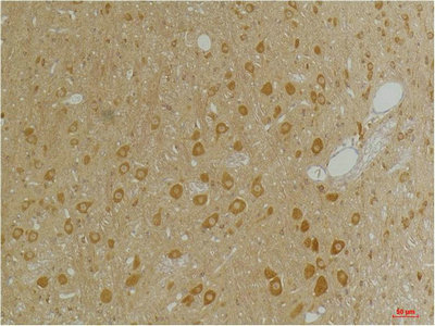 Immunohistochemical analysis of paraffin-embedded Rat BrainTissue using GABA A Receptor α3 Rabbit pAb diluted at 1:200.