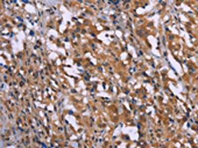 The image on the left is immunohistochemistry of paraffin-embedded Human gastic cancer tissue using CSB-PA102201(GAD1 Antibody) at dilution 1/40, on the right is treated with synthetic peptide. (Original magnification: ×200)