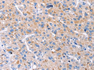 The image on the left is immunohistochemistry of paraffin-embedded Human liver cancer tissue using CSB-PA063689(GAS1 Antibody) at dilution 1/20, on the right is treated with synthetic peptide. (Original magnification: ×200)