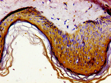 Immunohistochemistry of paraffin-embedded human skin tissue using CSB-PA009264LA01HU at dilution of 1:100
