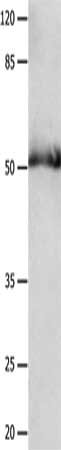 • Gel: 8%SDS-PAGE, Lysate: 40 μg, Lane: Human fetal muscle tissue, Primary antibody: CSB-PA245851(GDF6 Antibody) at dilution 1/300, Secondary antibody: Goat anti rabbit IgG at 1/8000 dilution, Exposure time: 2 minutes