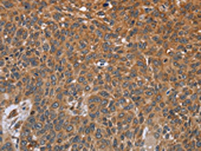 • The image on the left is immunohistochemistry of paraffin-embedded Human lung cancer tissue using CSB-PA902740(GH2 Antibody) at dilution 1/40, on the right is treated with fusion protein. (Original magnification: ×200)