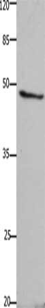 • Gel: 10%SDS-PAGE, Lysate: 40 μg, Lane: A549 cells, Primary antibody: CSB-PA545380(GHSR Antibody) at dilution 1/1500, Secondary antibody: Goat anti rabbit IgG at 1/8000 dilution, Exposure time: 1 minute