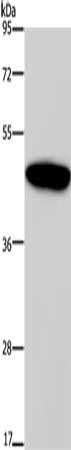 • Gel: 10%SDS-PAGE, Lysate: 40 μg, Lane: Mouse pancreas tissue, Primary antibody: CSB-PA214765(GIPR Antibody) at dilution 1/200, Secondary antibody: Goat anti rabbit IgG at 1/8000 dilution, Exposure time: 10 seconds