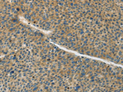 The image on the left is immunohistochemistry of paraffin-embedded Human liver cancer tissue using CSB-PA078531(GJC1 Antibody) at dilution 1/50, on the right is treated with synthetic peptide. (Original magnification: ×200)