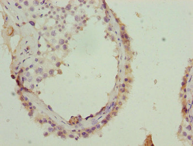 Immunohistochemistry of paraffin-embedded human testis tissue using CSB-PA009678LA01HU at dilution of 1:100