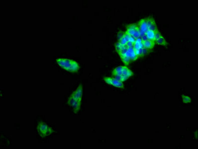 • Immunofluorescence staining of 293 cells with CSB-PA819471LA01HU at 1:100, counter-stained with DAPI. The cells were fixed in 4% formaldehyde, permeabilized using 0.2% Triton X-100 and blocked in 10% normal Goat Serum. The cells were then incubated with the antibody overnight at 4°C. The secondary antibody was Alexa Fluor 488-congugated AffiniPure Goat Anti-Rabbit IgG(H+L).