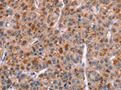 The image on the left is immunohistochemistry of paraffin-embedded Human liver cancer tissue using CSB-PA945843(GPHN Antibody) at dilution 1/15, on the right is treated with synthetic peptide. (Original magnification: ×200)