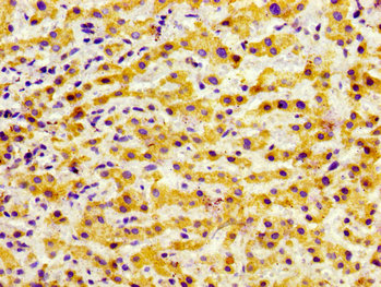 Immunohistochemistry of paraffin-embedded human liver cancer using CSB-PA009926LA01HU at dilution of 1:100