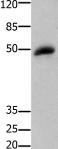 • Gel: 10%SDS-PAGE Lysates (from left to right): Human small intestine stromal cancer tissue Amount of lysate: 30μg per lane Primary antibody: 1/100 dilution Secondary antibody dilution: 1/8000 Exposure time: 5 minutes