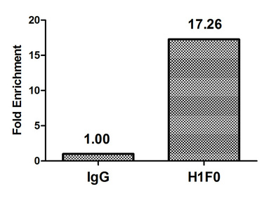 Chromatin Immunoprecipitation Hela (4*106) were treated with Micrococcal Nuclease, sonicated, and immunoprecipitated with 5μg anti-H1F0 (CSB-PA010087OA101nme1HU) or a control normal rabbit IgG. The resulting ChIP DNA was quantified using real-time PCR with primers against the β-Globin promoter.