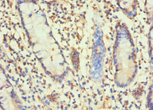Immunohistochemistry of paraffin-embedded human small intestine tissue using CSB-PA010087ESR2HU at dilution of 1:100