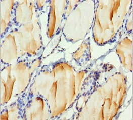 • Immunohistochemistry of paraffin-embedded human thyroid tissue using CSB-PA010098DSR2HU at dilution of 1:100