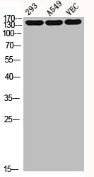 • Western Blot analysis of 293 A549 VEC cells using Histone deacetylase 6 Polyclonal Antibody
