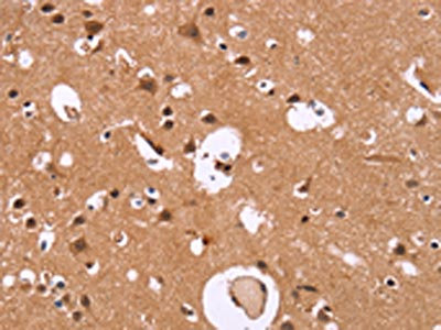 The image on the left is immunohistochemistry of paraffin-embedded Human brain tissue using CSB-PA211136(HDLBP Antibody) at dilution 1/30, on the right is treated with synthetic peptide. (Original magnification: ×200)