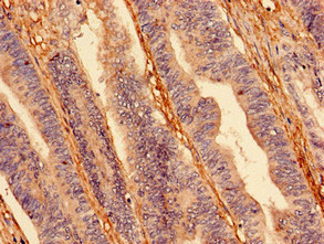 Immunocytochemistry analysis of human colon cancer using CSB-PA12807A0Rb at dilution of 1:100