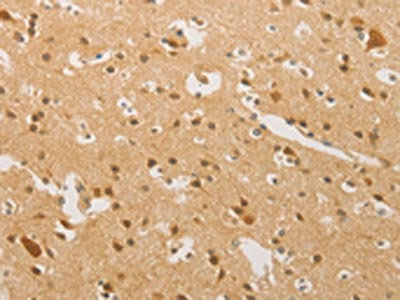 • The image on the left is immunohistochemistry of paraffin-embedded Human brain tissue using CSB-PA072130(HIPK4 Antibody) at dilution 1/30, on the right is treated with fusion protein. (Original magnification: ×200)