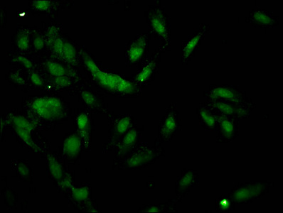• Immunofluorescent analysis of Hela cells using CSB-PA010378PA62nacHU at dilution of 1:100 and Alexa Fluor 488-congugated AffiniPure Goat Anti-Rabbit IgG(H+L)