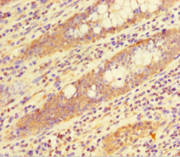 • Immunohistochemistry of paraffin-embedded human colon cancer using CSB-PA010378HA01HU at dilution of 1:100