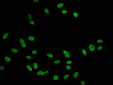 Immunofluorescent analysis of Hela cells using CSB-PA010389PA101nogHU at dilution of 1:100 and Alexa Fluor 488-congugated AffiniPure Goat Anti-Rabbit IgG(H+L)