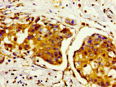 • Immunohistochemistry of paraffin-embedded human breast cancer using CSB-PA010389PA95nhibHU at dilution of 1:100